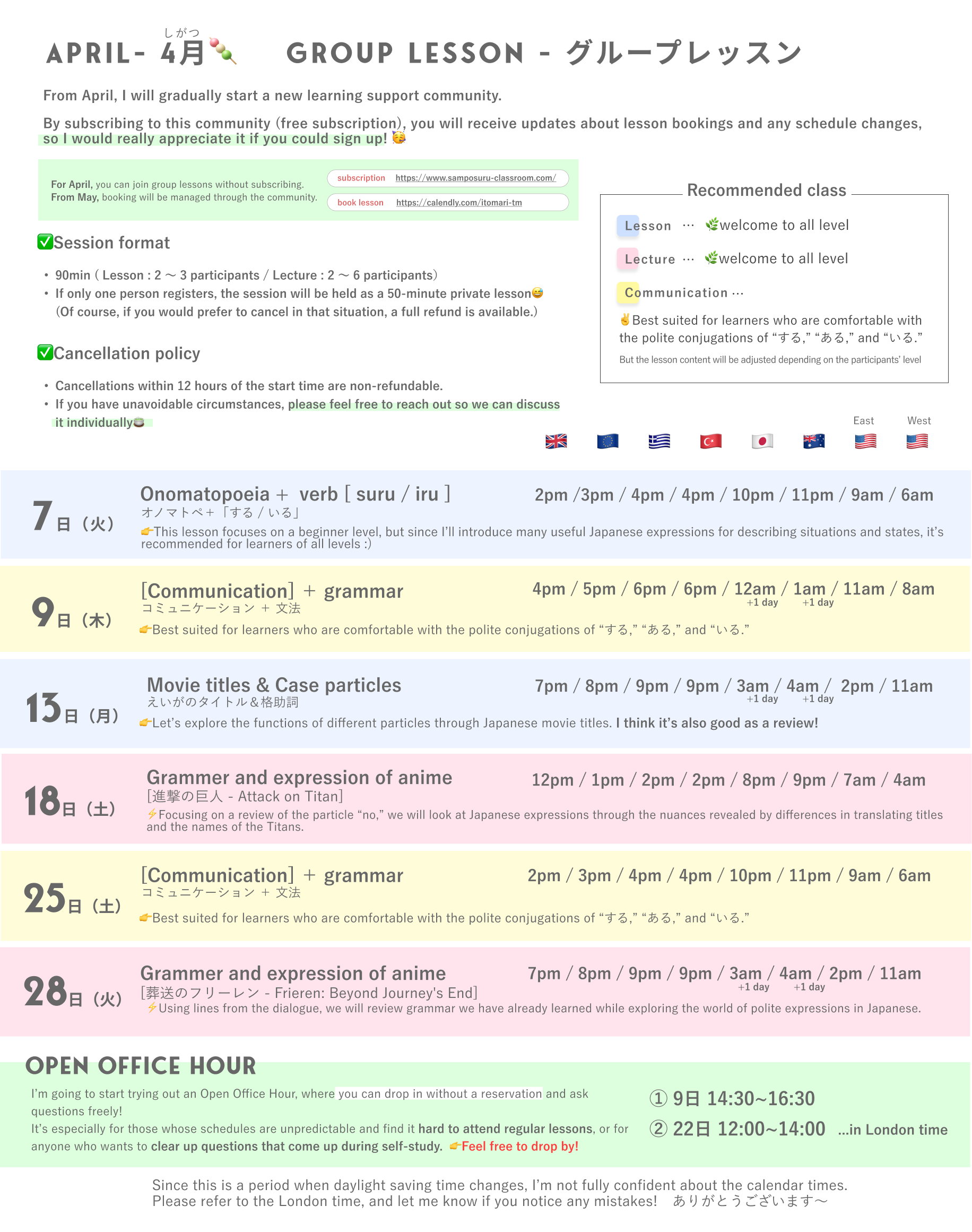 Also thank you to everyone who has already joined the group lessons I’ve been gradually starting this month! It's still on the process of try and error but I really appreciate your participations and support!